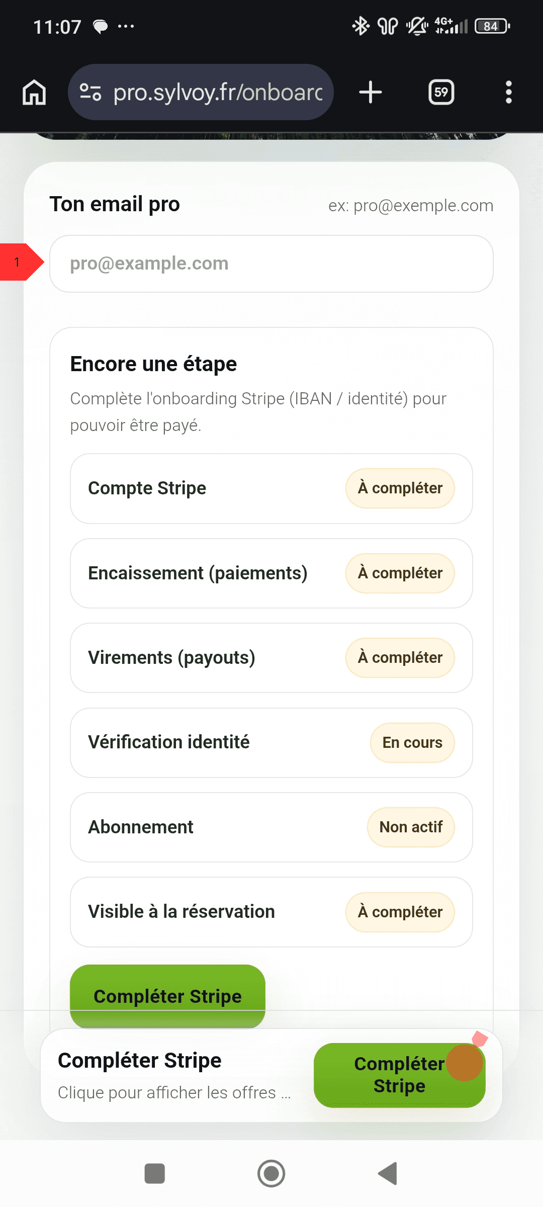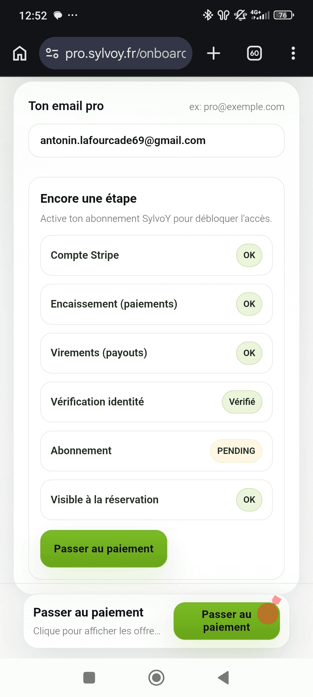 Vous avez fini la création de votre profil sylvoy, vous devez maintenant crée votre compte stripe