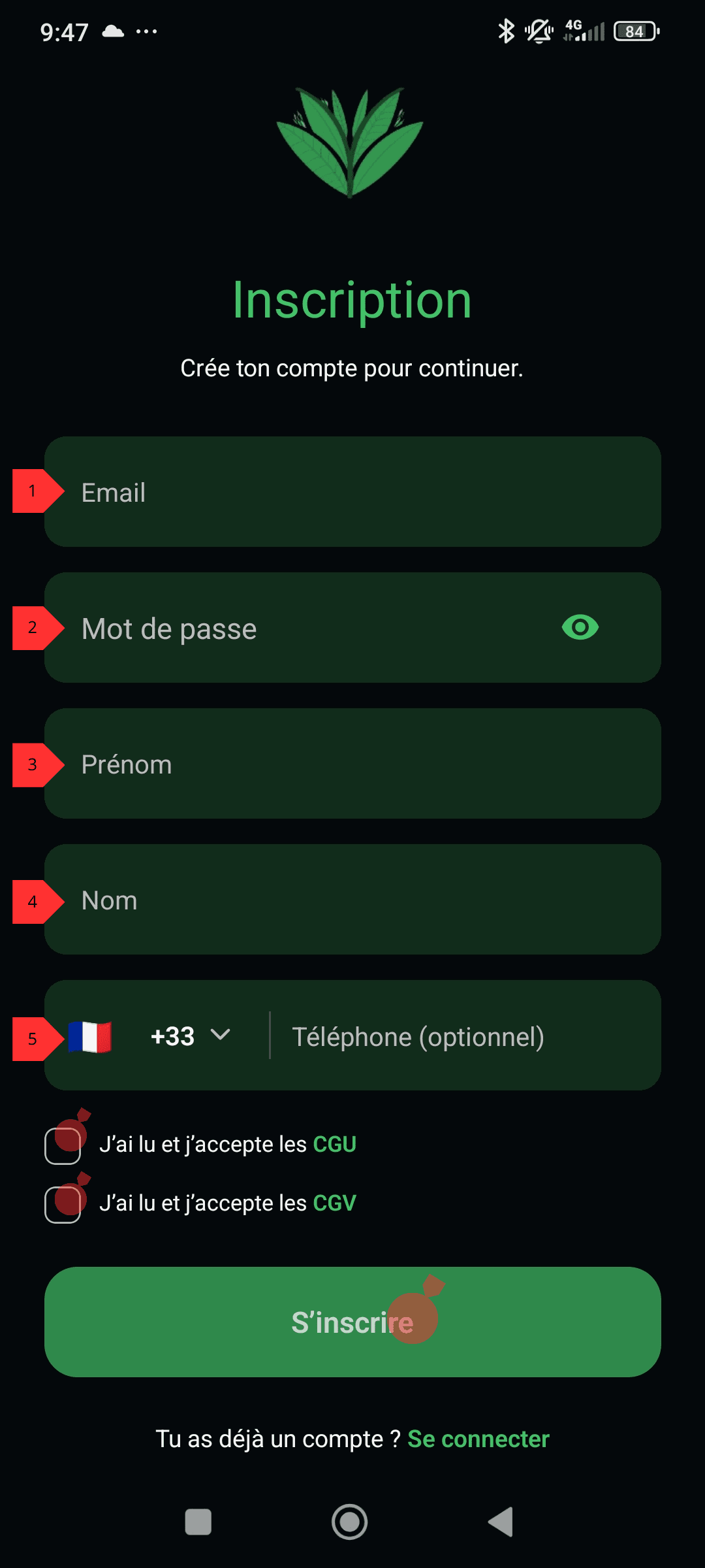 Cliquez sur le bouton S’inscrire pour ouvrir le formulaire d’enregistrement.